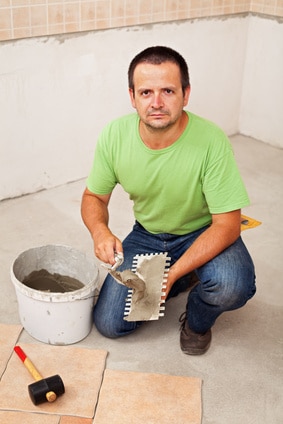 Jetzt werden Sie glücklich sein, wenn der Fugenmörtel die genau richtige Konsistenz hat. Denn dann ist das Legen und Andrücken der Fliesen schnell getan.