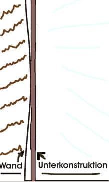 Bei einer unebenen Wand müssen Sie mit der Unterkonstruktion die Unebenheiten der Wand ausgleichen.